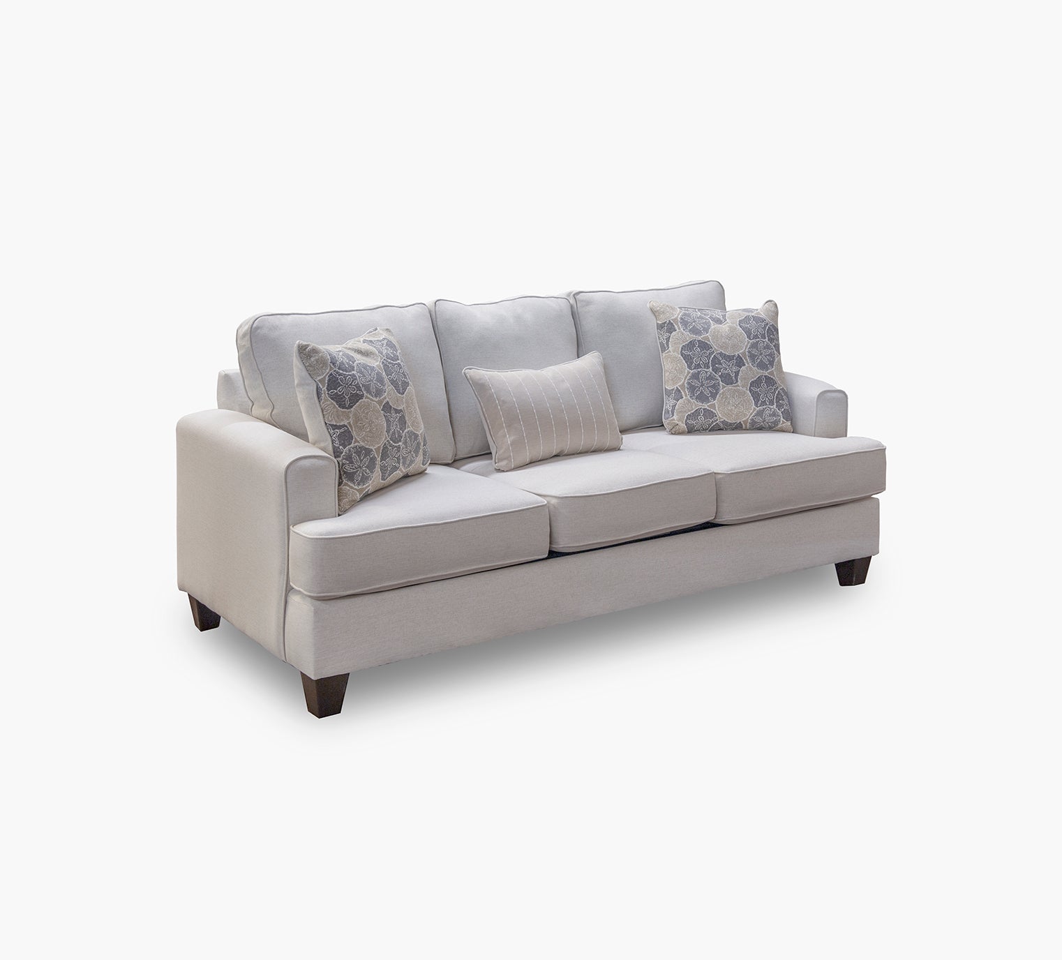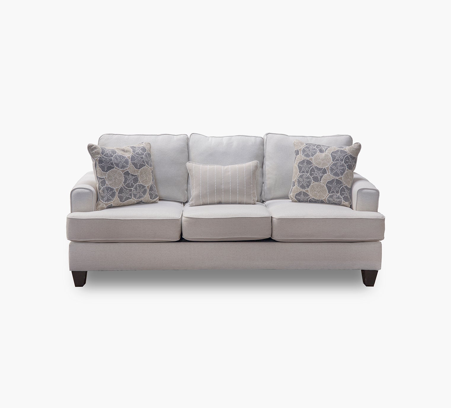海岸设计,采用耐用、易于清洁的面料。具有轨道臂和三分之三的 T 形座椅样式。座椅和靠背垫是宽松且可翻转的。包括 3 个枕头:2 个沙元图案枕头和 1 个条纹肾形枕头。 不包括床垫。 100% 革命聚丙烯?抄送:WS