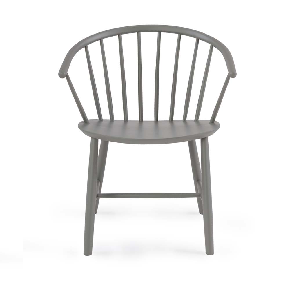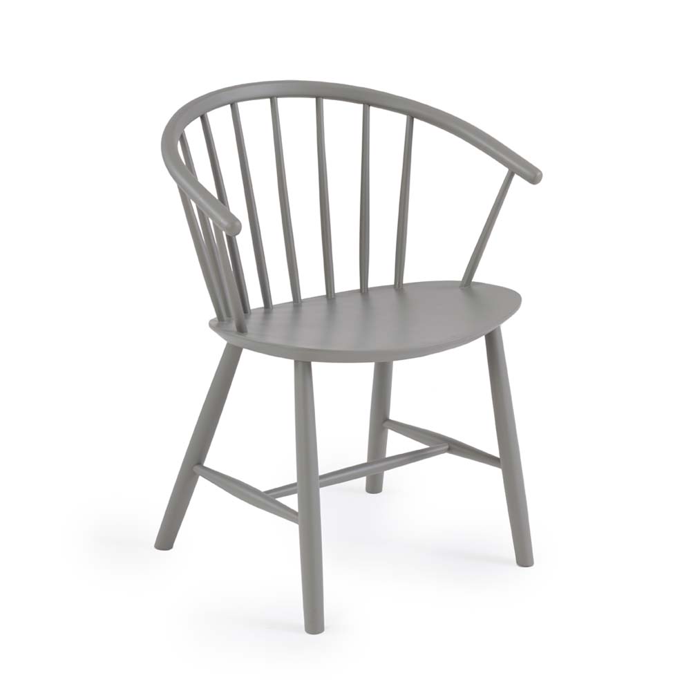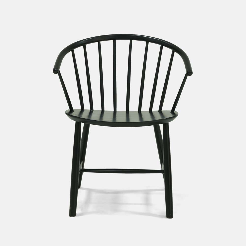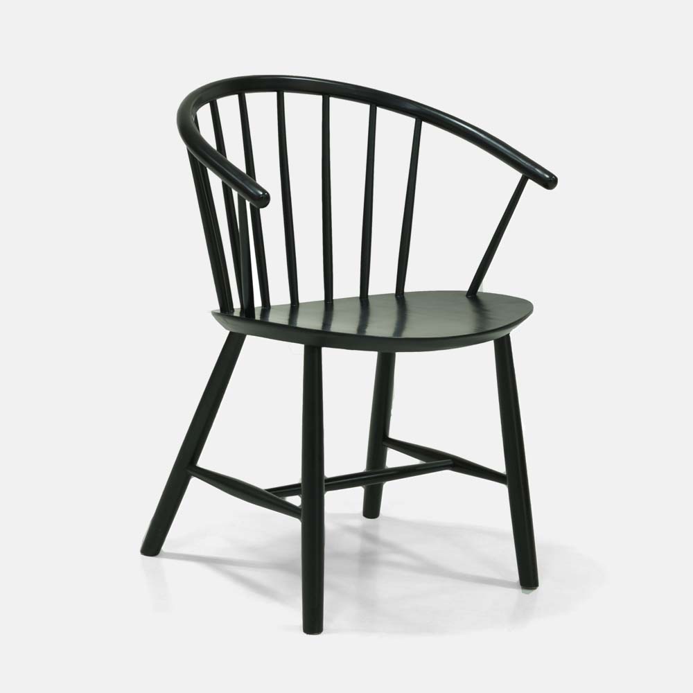 A Mid-Century Modern style dining chair with curved spindle back, made from Malaysian Oak in lacquer finish.Size: L45xW62.5xH78xSH44 cm